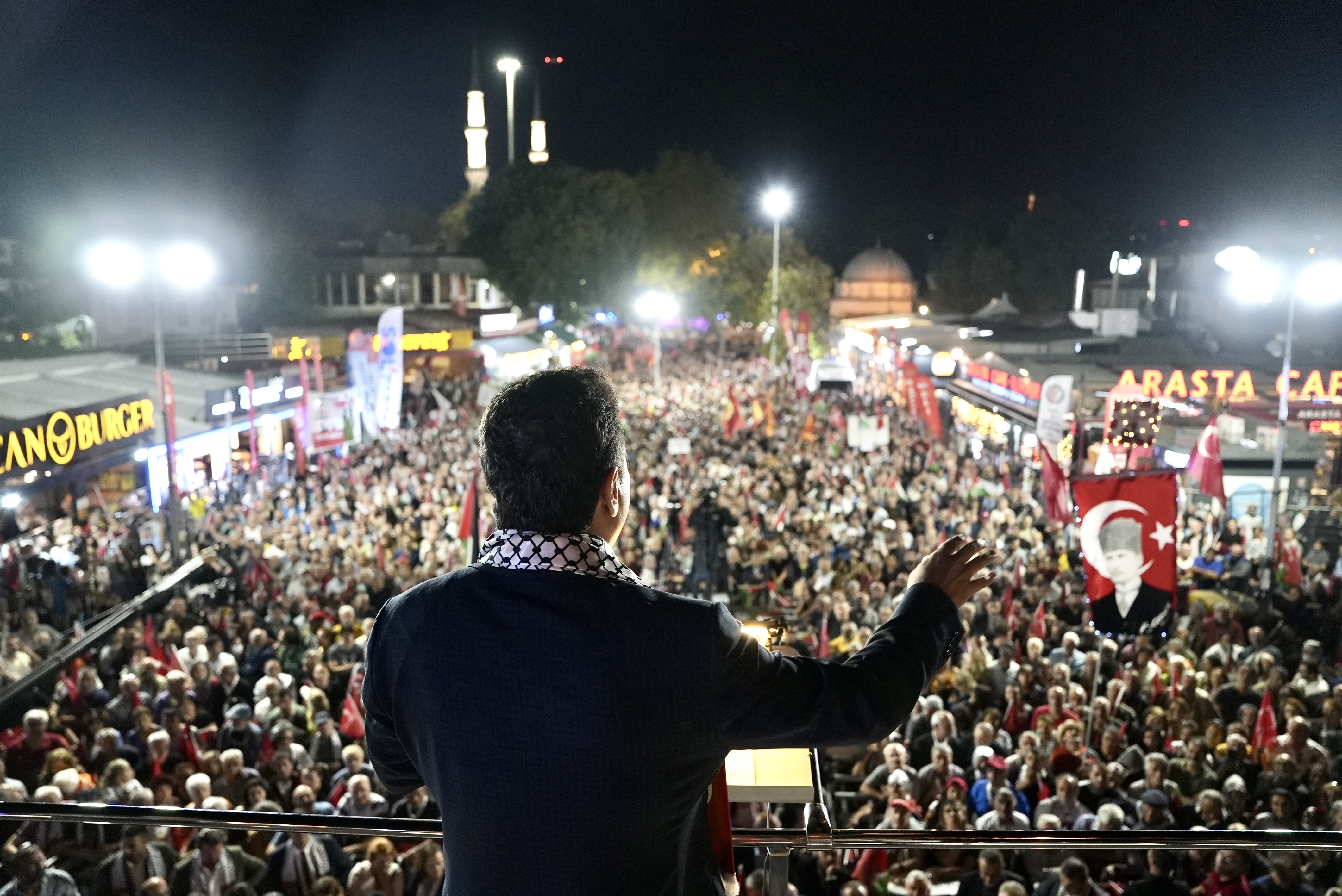 DEVA Partisi Genel Başkanı Ali Babacan, Eyüpsultan‘da Cumhuriyet Halk Partisi’nin (CHP) ev sahipliğinde düzenlenen “Filistin’e Destek” mitinginde binlere hitap etti. Babacan, “ Ben, bu meydandan, Sayın Erdoğan’a sesleniyorum. İki lafın başı ‘Dostum Trump, dostum Trump’ diyen Erdoğan’a sesleniyorum: Netanyahu’nun en büyük destekçisine siz nasıl olur da ‘dostum’ dersiniz, yahu? ” dedi.